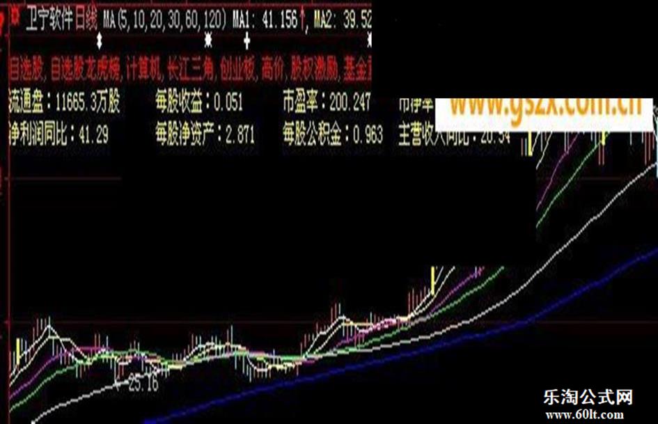 DRAWTEXTABS(280,25,'市盈率:'+STR(DYNAINFO(39))),COLORYELLOW;
