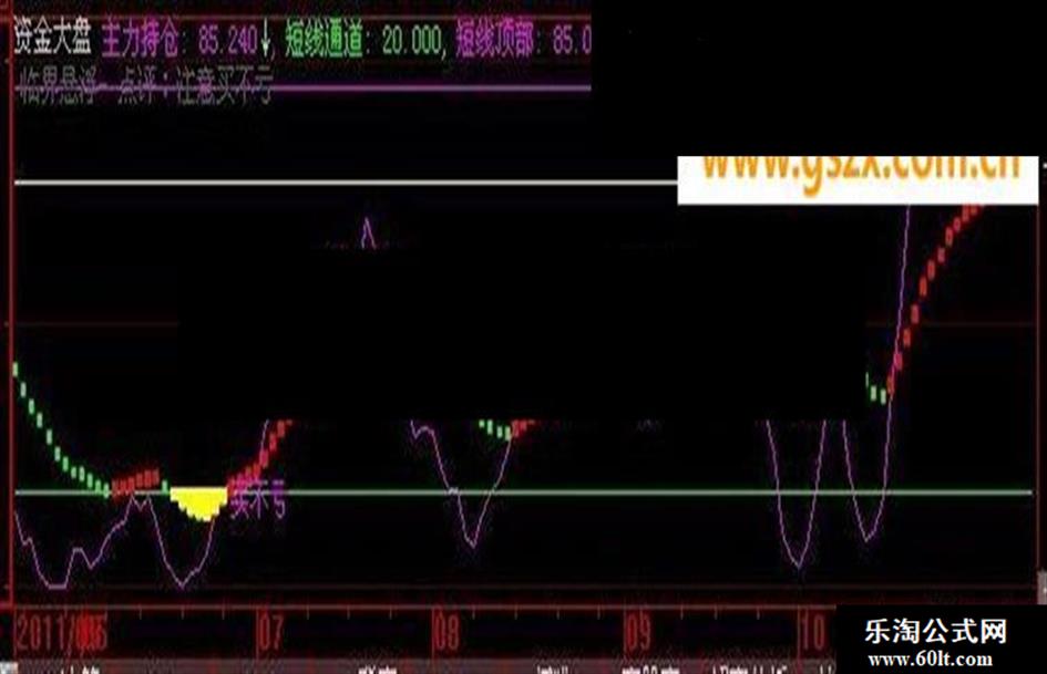 DRAWTEXT(CROSS(短线,短线通道) ,短线+1,'买不亏'),COLORFF00FF;