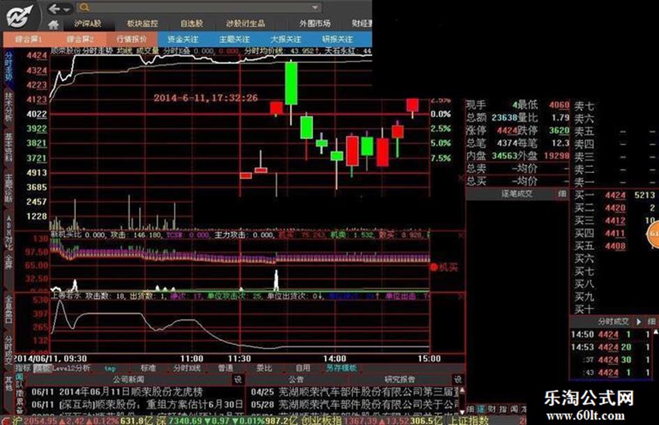 具体使用方法是下载所附文件INDCAT.FNC,引入大智慧后(共引入2个公式)按分时图调用分时主图“分时K叠”即可使用。