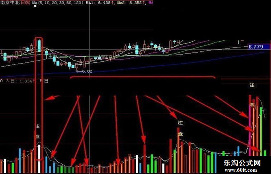 注意:DRAWTEXT(FILTER((量能>2 AND REF(量能>1 ,1 ) AND 换手>4 OR 换手>5) AND (开心看量>0 AND 开心看量>VMA1) , 3),VAR1*1.15 ,'注' ),COLORYELLOW;