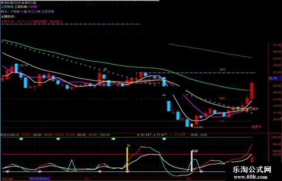 操作说明:此欢乐KJ副图的趋势是基于抢反弹的短线思路,无论在牛市和熊市都有很好的表现,并加入了自己通过实践验证的几种买入指标提示(有些可以作为选股指标使用)。所发指标都是经过本人多年的实践优化而来,无未来、成功率高。指标的好坏也是因人而异,会用的是个宝,不会用的
