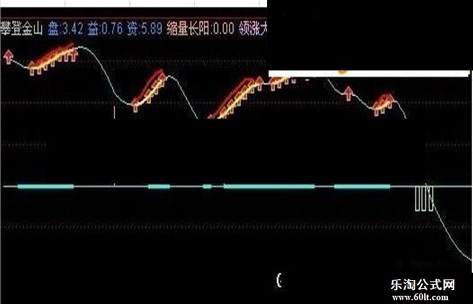 IF(攀登>金山 AND 攀登>=REF(攀登,1),攀登,DRAWNULL),COLORRED,LINETHICK2;