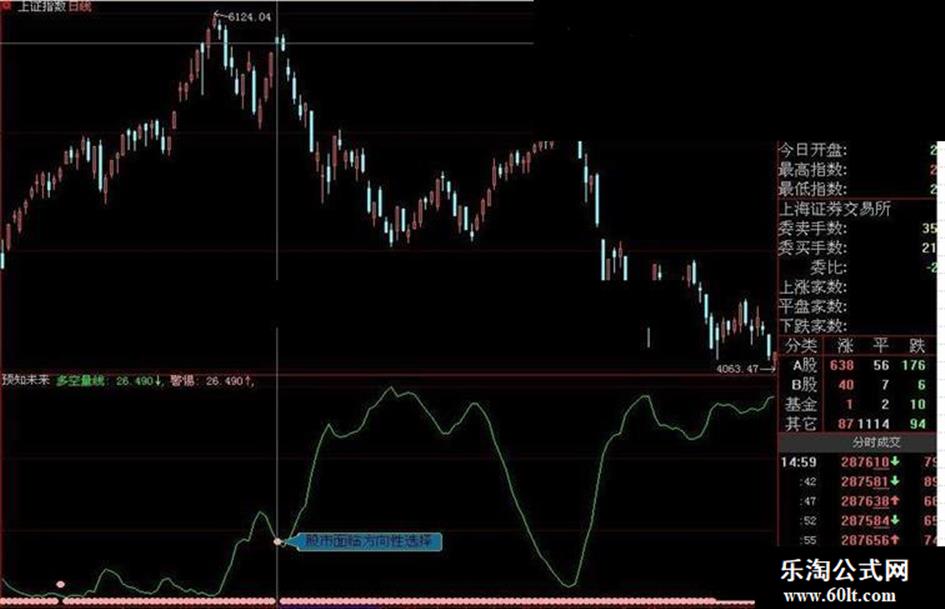 多空量线:IF(IF(IF(REF(CLOSE,BARPOS-1)<1000 AND CLOSE=INDEXC,1,0)=1,1,0) AND IF(DATATYPE=8,1,0),SMA((HHV(HIGH,36)-CLOSE)/(HHV(HIGH,36)-LLV(LOW,36))*100,3,1),0),COLOR00FF00;