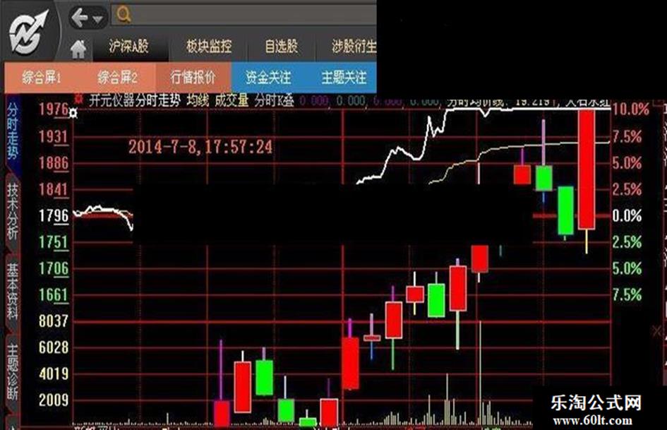 本指标就是针对上述问题编写的一个指标,在分时主图中加入了近10多个交易日的K线图,这样在查看分时主图时,就能够在不进行任何切换操作的情况下查看近来K线走势图以及自己专用的各个分时副图。
