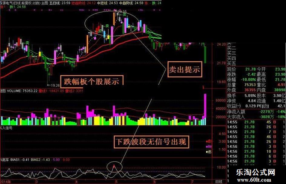 技术指标不是万能的,但没有技术指标是万万不能的! 您使用的技术指标敢用每日跌幅板个股来展示吗? 在资金为王的市场摸爬滚打多年,经过无数次测试验证,终于编出一系列成功率较高的个股分析指标,有待市场共同验证! 本套指标一共四件,主图一件,附图三件。主图名称:主图;附图名称:量图、买入信号、乖离率; 适用于大智慧软件;