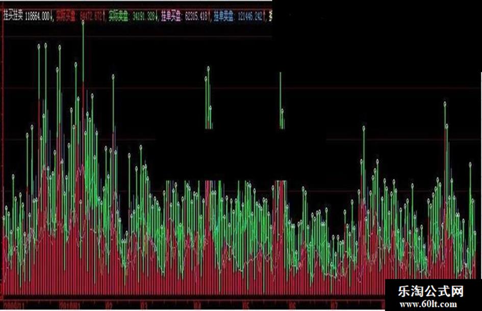 实际卖盘:IF(CLOSE>OPEN,AA*((HIGH-CLOSE)+(OPEN-LOW)),IF(CLOSE<OPEN,AA*(HIGH-LOW),VOL/2)),Color00F800, LINETHICK1;