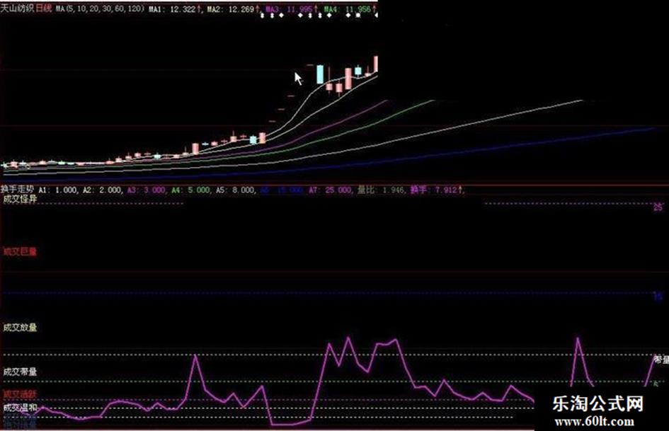 DRAWTEXT(换手<a3 AND 换手>=a2 AND DISPSTATUS=2,换手,'温和'),COLORWHITE;
