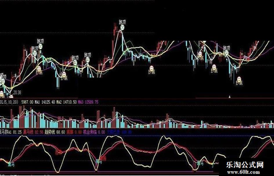 DRAWTEXT(CROSS(黑马线,A5)AND 趋势线<80,黑马线,'追涨');