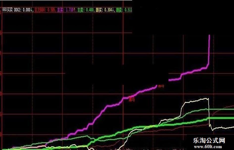 drawtext(cross(跟买,跟卖) AND 跟买> 跟卖 AND 主力DDX>0 AND 主买> 主卖 ,主买,'黑马'),COLORRED;