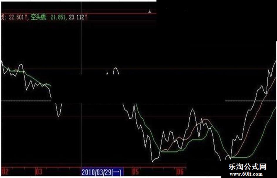 多头线:(SUM((((2)*(CLOSE-CLOSE*0.2)+(OPEN-OPEN*0.2)+(HIGH-HIGH*0.2)+(LOW-LOW*0.2))/(5))*(VOL),8))/(SUM(VOL,8)),COLOR0099FF,LINETHICK1; 空头线:LLV(多头线,8),LINETHICK1,COLORGREEN; C-C*0.2,COLORWHITE,LINETHICK1;