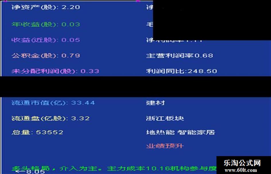 该主图源码将各股票的各种财务指标和概念板块信息集中到一个页面,可以非常快捷的看到所有信息。 并且根据走势给出抄底提示,投资评价,非常方便