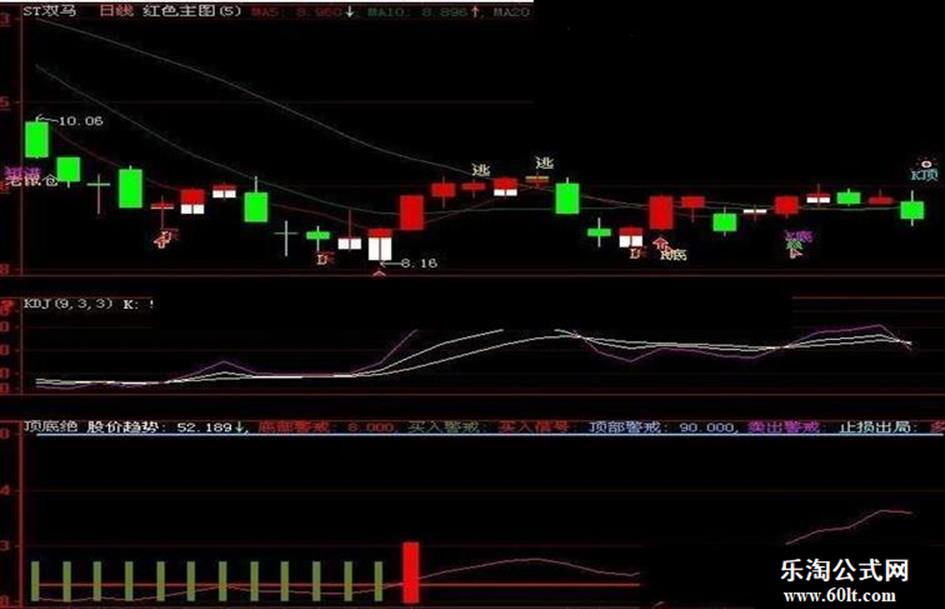 DRAWTEXT(FILTER(D2>0,5),H*1.03,'K顶'),COLORf0f000;{KDJ顶背离}