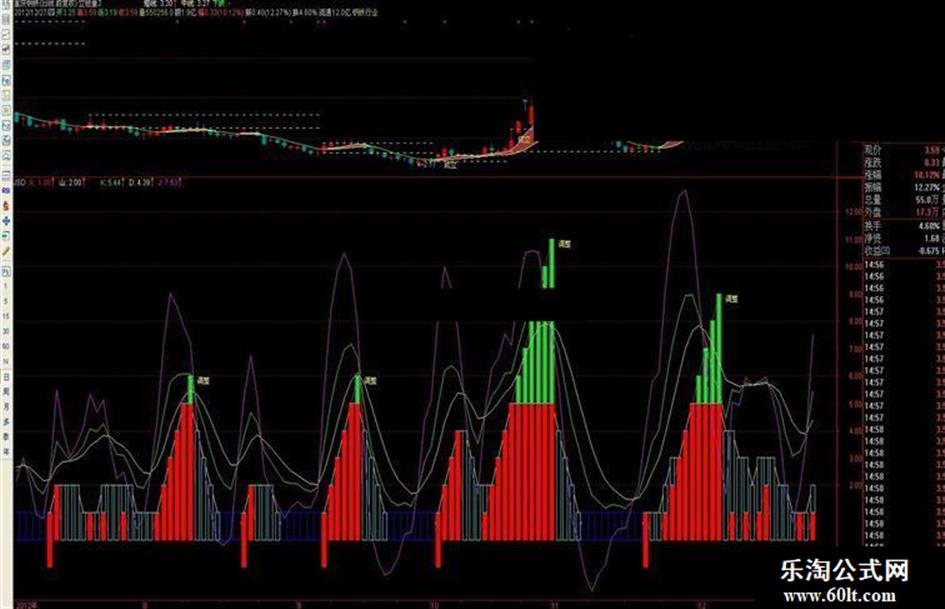 J: (3*SMA(SMA(VAR32,2,1),2,1)-2*SMA(SMA(SMA(VAR32,2,1),2,1),3,1)), COLORF00FF0;