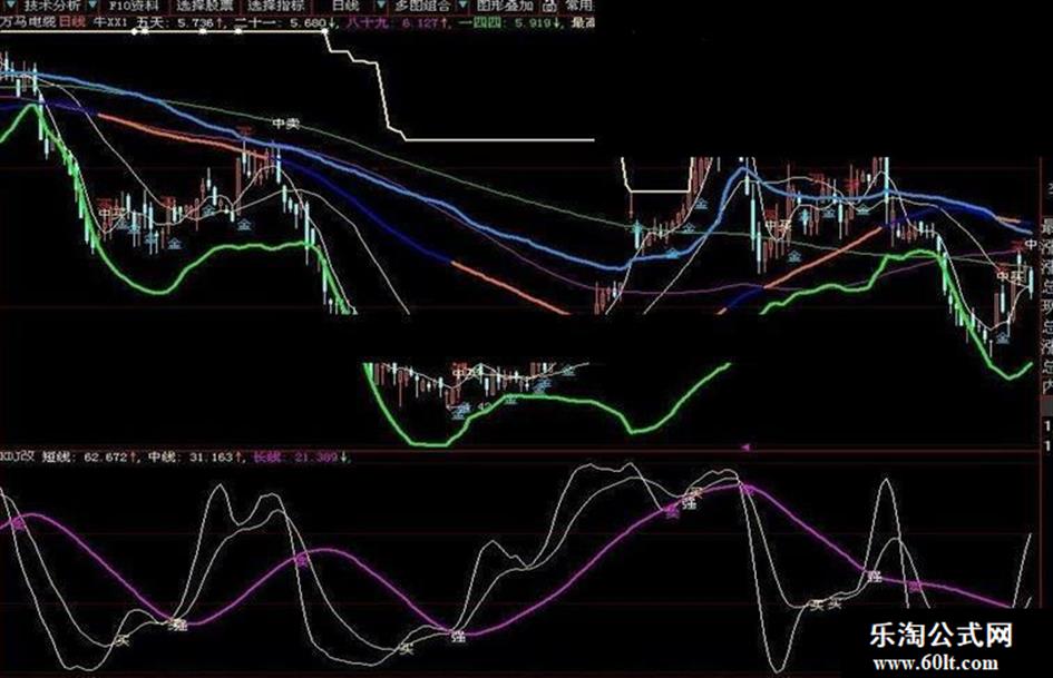 DRAWTEXT(CROSS(长线,短线),长线-0.03,'卖')