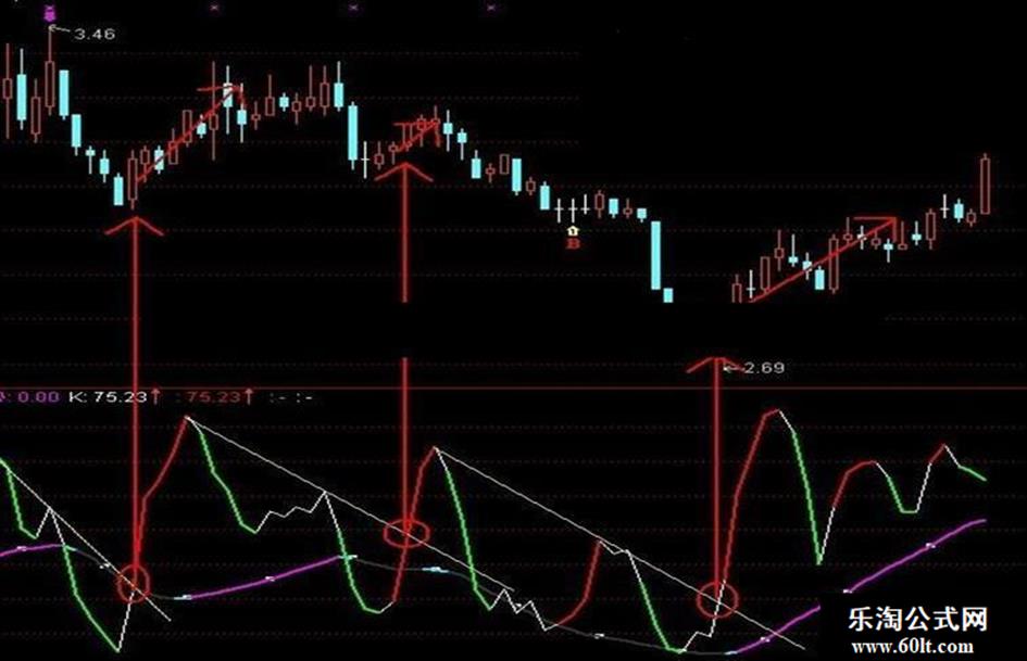 转势:CROSS(趋势线,REF(趋势线,1)),NODRAW,COLORFF00FF;
