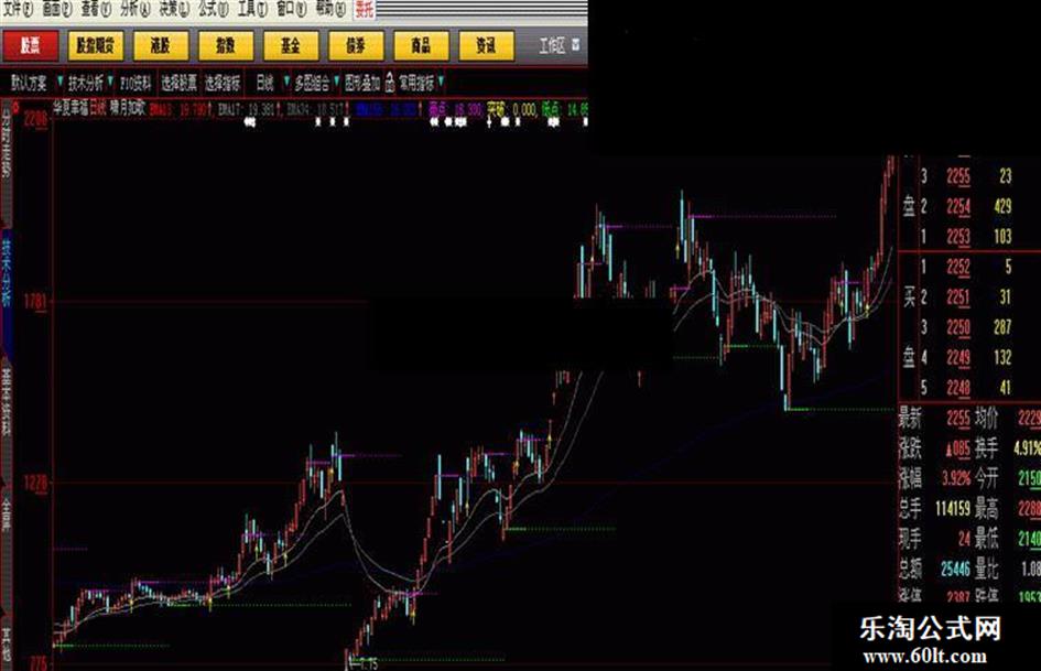 DRAWTEXT(C-O>=0 AND O/L>1.05 AND L<=LLV(L,30),L,'★<-绝底'),COLORMAGENTA;