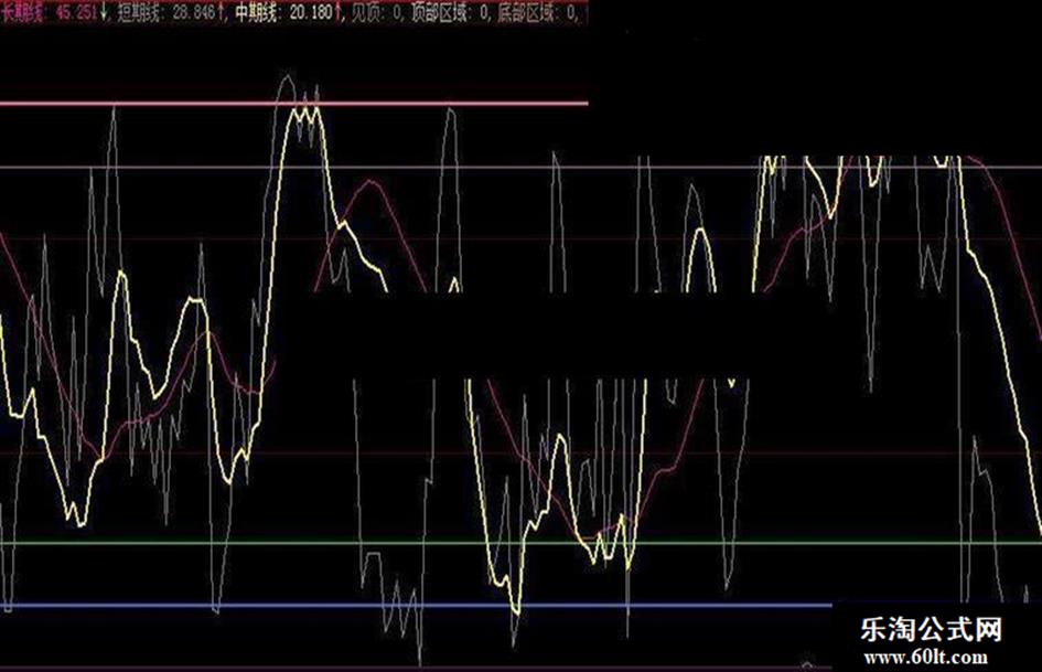 顶部区域:(中期线<ref(中期线,1) and ref(中期线,1)>80) and (ref(短期线,1)>95 or ref(短期线,2)>95 ) and 长期线>60 and 短期线<83.5