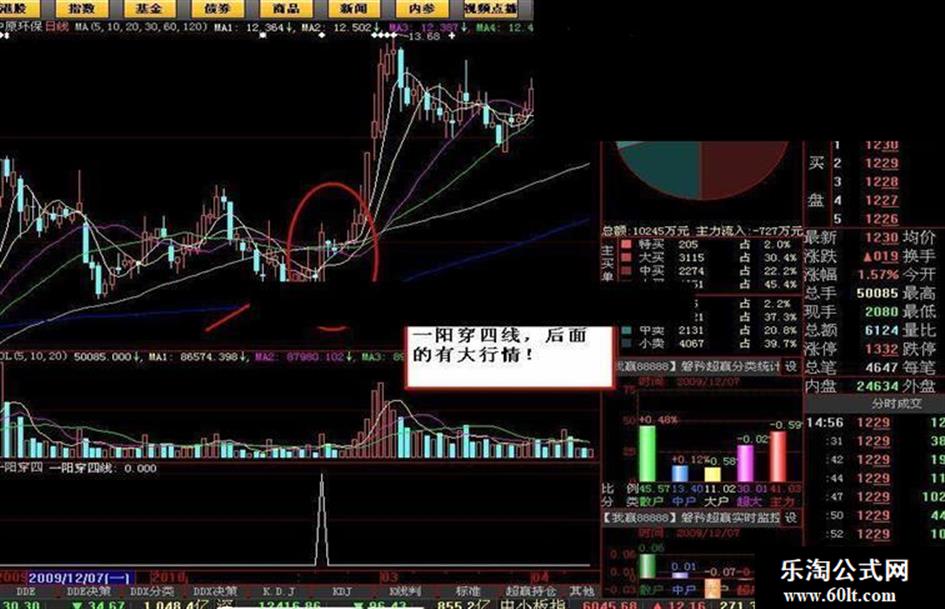 AA1:=CROSS(C,MA(C,5)) AND CROSS(C,MA(C,10)) AND CROSS(C,MA(C,20)) AND CROSS(C,MA(C,30)); AA2:=CROSS(MA(V,5),MA(V,10)); 一阳穿四线:AA1 AND AA2;