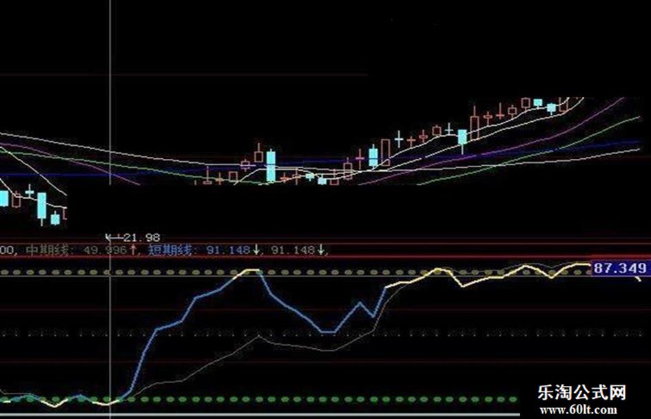 PARTLINE(短期线,短期线<=10 or 短期线>=80,rgb(255,230,0)),LINETHICK2;