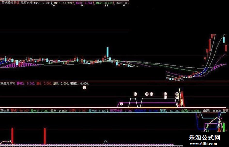 抄底魔鬼:当出现预警信号时,可关注股票;当同一位置有三个以上信号出现时,可大胆买入;结合均线效果更佳;可用于选股,底5=60.