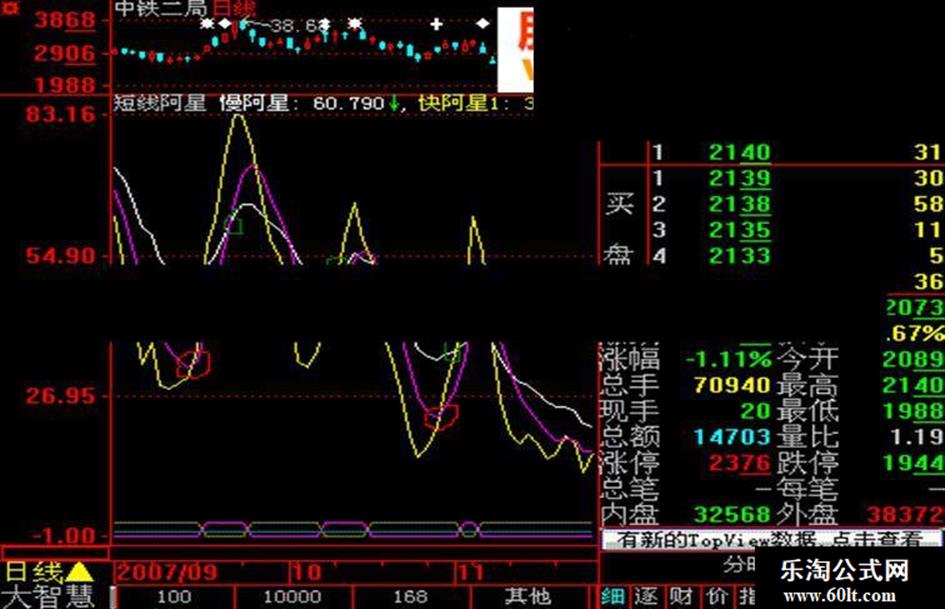 Var1:=(CLOSE-LLV(LOW,12))/(HHV(HIGH,12)-LLV(LOW,12))*100; 慢阿星: SMA(Var1,10,1); Var2:=(CLOSE-LLV(LOW,11))/(HHV(HIGH,11)-LLV(LOW,11))*100; 快阿星1: SMA(Var2,3,1); 快阿星2: SMA(快阿星1,3,1); 买进: IF(慢阿星<5 AND VOL>1.5*MA(VOL,5) AND CROSS(快阿星2,慢阿星),50,0); 卖出: IF(慢阿星>80 AND CROSS(慢阿星,快阿星2),60,0); Var3:=(HIGH+LOW+OPEN+2*CLOSE)/5; Var4:=REF(Var3,1); Var5:=SMA(MAX(Var3-Var4,0),10,1)/SMA(ABS(Var3-Var4),10,1)*100; 段底: IF(COUNT(Var5<20,5)>=1 AND COUNT(Var3=LLV(Var3,5),10)>=1 AND((c-ref(c,1))/(ref(c,1))>0.05) AND CLOSE>REF(OPEN,1) AND VOL>1.5*MA(VOL,5),60,0); Var6:=(2*CLOSE+HIGH+LOW)/4; Var7:=LLV(LOW,34); Var8:=HHV(HIGH,34); Var9:=EMA((Var6-Var7)/(Var8-Var7)*100,13); VarA:=EMA(0.667*REF(Var9,1)+0.333*Var9,2); 持仓: if(Var9>VarA,2,-1); 空仓: if(Var9<VarA,2,-1); VarB:=SMA(MAX(CLOSE-REF(CLOSE,1),0),7,1)/SMA(ABS(CLOSE-REF(CLOSE,1)),7,1)*100; 买: IF(REF(VarB,1)<20 AND (CLOSE/REF(CLOSE,1)-1)*100>9 AND CLOSE=HIGH,85,0); VarC:=(HIGH+LOW+OPEN+2*CLOSE)/5; VarD:=REF(VarC,1); VarE:=SMA(MAX(VarC-VarD,0),10,1)/SMA(ABS(VarC-VarD),10,1)*100; 底部:=IF(COUNT(VarE<=12,2),30,0); 买1: IF(CROSS(VarE,底部) AND VOL>1.5*MA(VOL,5),60,0);
