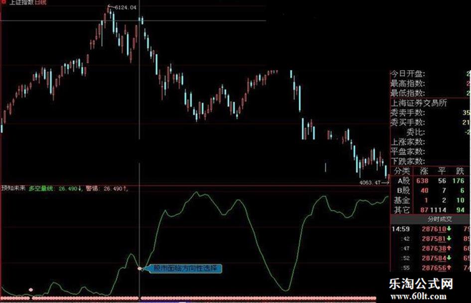 多空量线:IF(IF(IF(REF(CLOSE,BARPOS-1)<1000 AND CLOSE=INDEXC,1,0)=1,1,0) AND IF(DATATYPE=8,1,0),SMA((HHV(HIGH,36)-CLOSE)/(HHV(HIGH,36)-LLV(LOW,36))*100,3,1),0),COLOR00FF00;