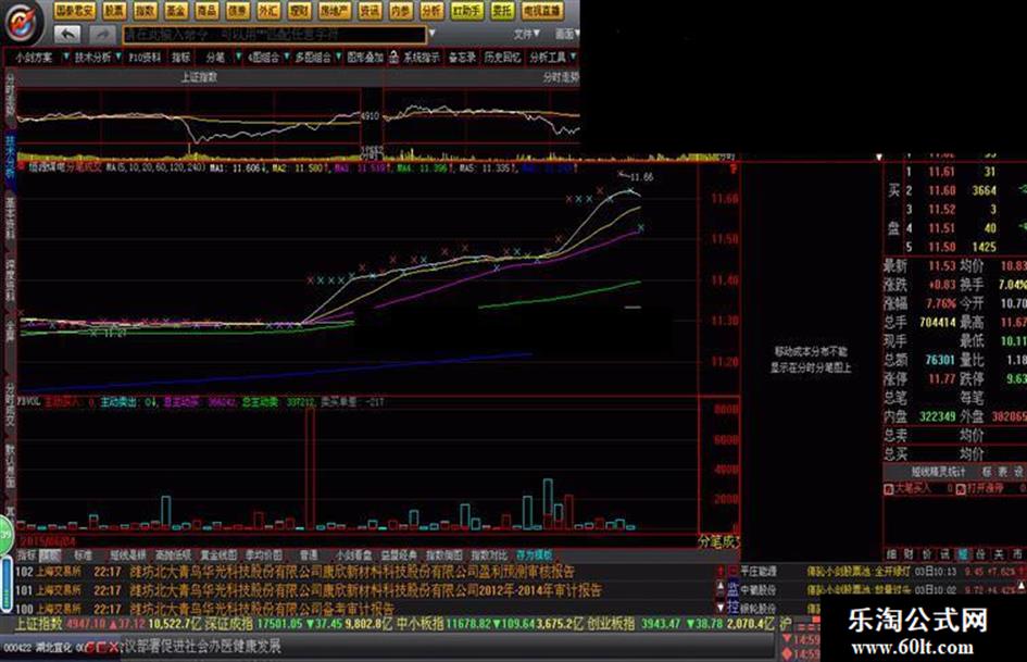 下面是大智慧免费行情版的分笔成交量fbvol指标,用于分笔副图,对分笔成交进行了拆单,比较接近逐笔数据了,祝大家投资愉快。