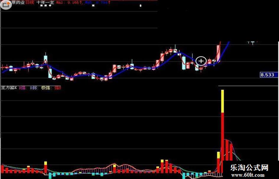 极强:STICKLINE(VUR5>0,0,VUR5,6.5,0),COLOR00FFFF;