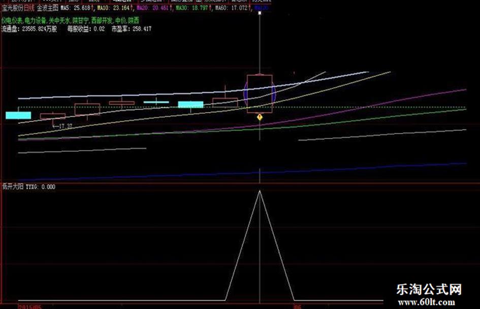 今天发上一个低开大阳线指标,指标是对战法的一种个人思路的表达,指标公式为通用源码。喜欢的就用,不喜欢的请绕道。