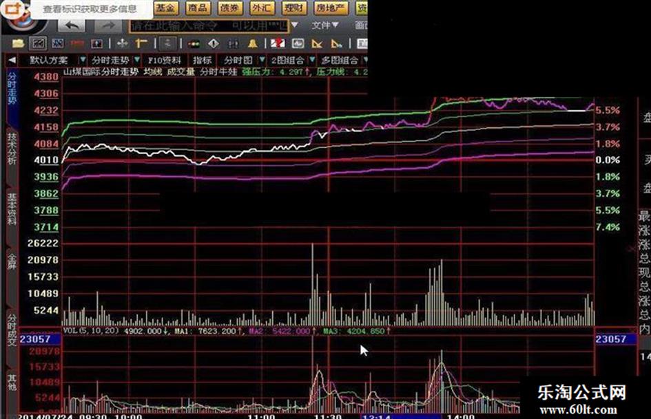 压力线:IF(SUM(C*VOL,M)/SUM(VOL,M)>0,IF(SUM(C*VOL,M)/SUM(VOL,M)*(1+(N/2000))>=DYNAINFO(3)*1.1,DYNAINFO(3)*1.1,SUM(C*VOL,M)/SUM(VOL,M)*(1+(N/2000))),IF(C*(1+(N/2000))>=DYNAINFO(3)*1.1,DYNAINFO(3)*1.1,C*(1+(N/2000)))),color00ff00,LINETHICK1,layer1;