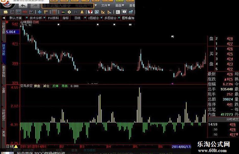 反弹:STICKLINE(多空趋势<0 AND 多空趋势>=REF(多空趋势,1),0,多空趋势,4,0),COLORGREEN;