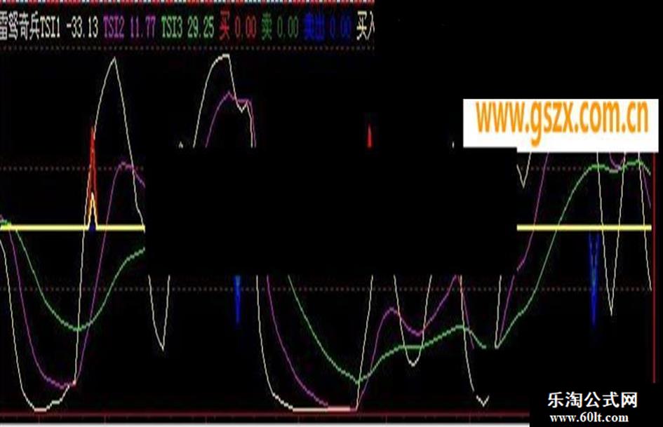 买:IF(TSI3<-45 AND CROSS(TSI2,TSI3),55,00),linethick2,colorred;