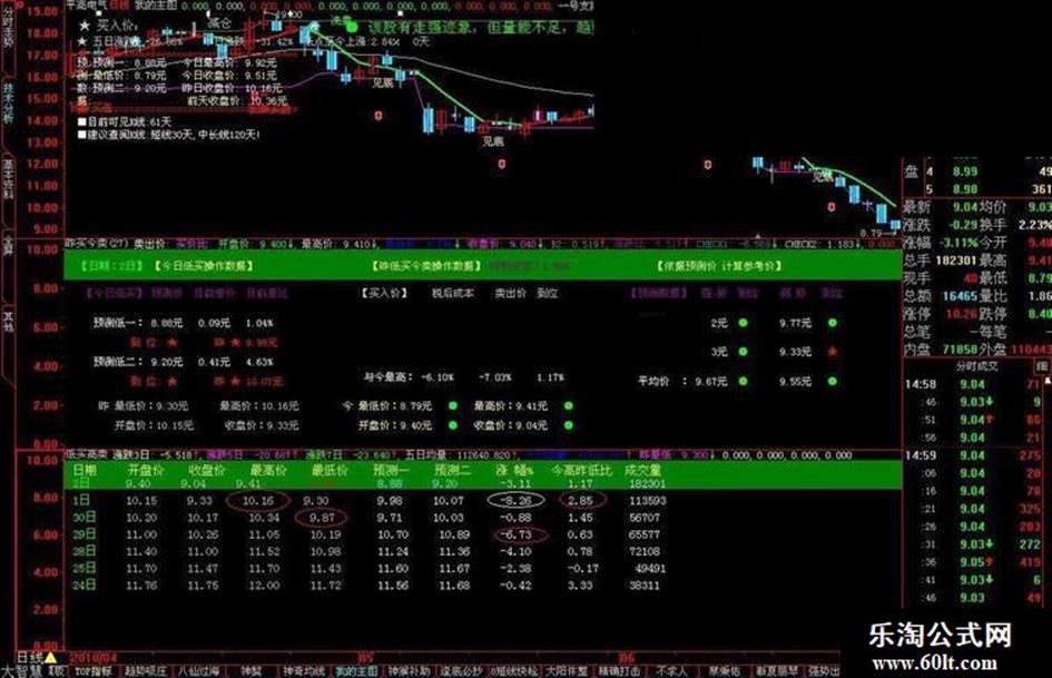 第三天(今天):依据 “预测股价”公式的“最高价",配合“分时主图”公式,以接近“最高价”卖出,或自行设定卖出价(建议2.5%以下)。