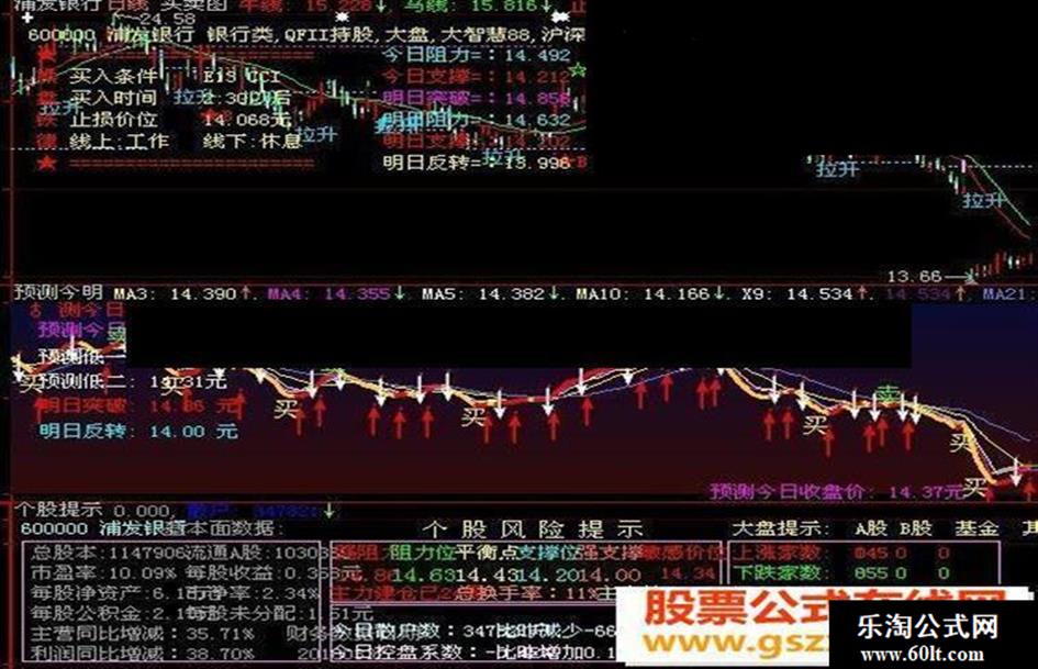 DRAWTEXTABS(15,35,'预测低一: '+NUMTOSTRN(预测低一,2)+'元'),COLORWHITE ,linethick1;