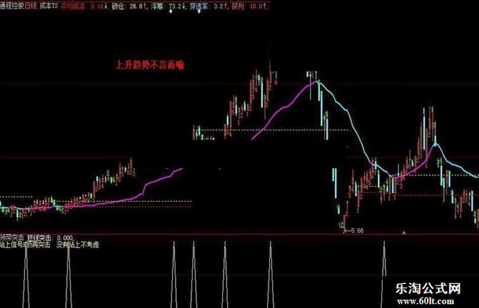 该指标在上升趋势中每一个信号都是加仓信号;在下跌趋势中必须遵循“站上信号K线顶再突击、没有站上信号K线顶不考虑”的原则。上升趋势不言而喻,下跌趋势短线操作。指标加密,不喜请绕行。