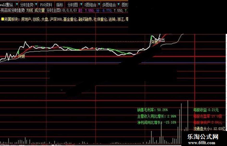 DRAWTEXTABS(500,300,'销售毛利率:'+NUMTOSTRN(销售毛利率,2)+'%'),LINETHICK1,COLOR00FF00;