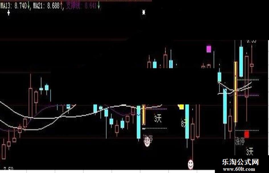 DRAWTEXT((O+C)/2 AND 涨停,(O+C)/2 ,B3),COLORMAGENTA;