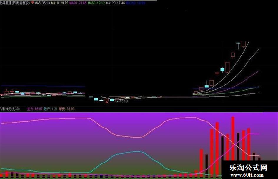 获利:=MA(A03,1),COLORMAGENTA,DOTLINE;