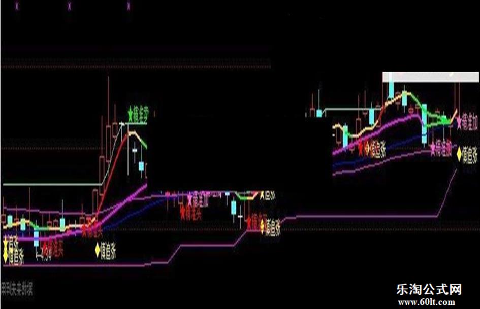 DRAWTEXT(CROSS(VA1,VA2)AND(C>=O)AND 黄金线>REF(黄金线,1),VA1*0.985,'★追涨'),COLORYELLOW;