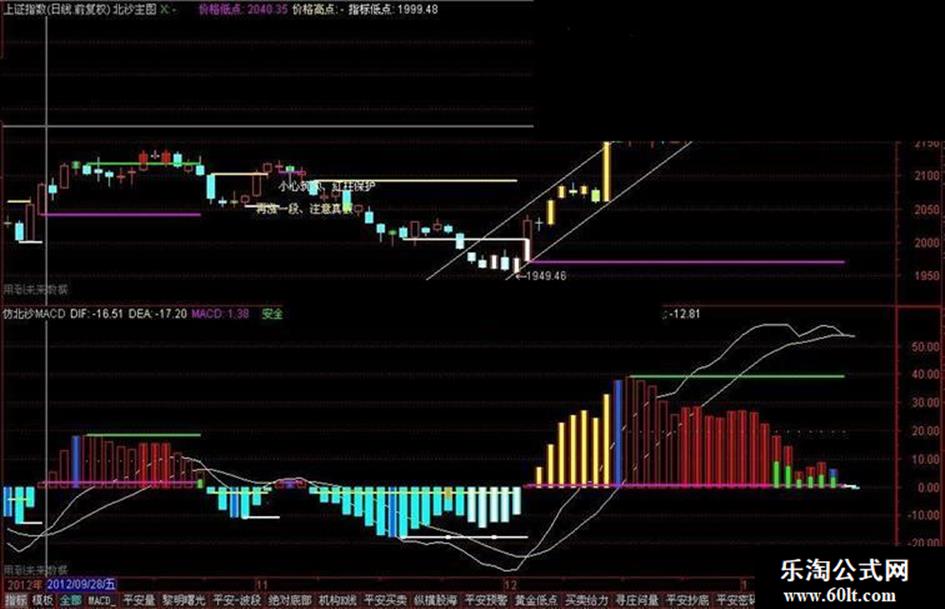 DRAWTEXT(JC AND 价格低点>JGGD,L*0.99,'小心筑顶、红柱保护');