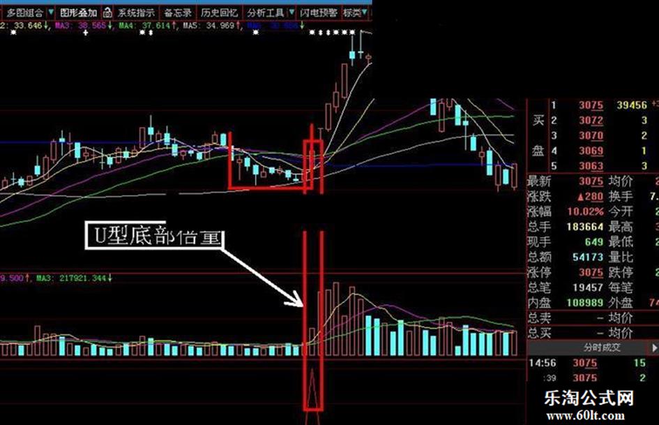 1。底部U型反转时需要有大于五日所有量,或倍量或堆量相随——表示有大资金进场;