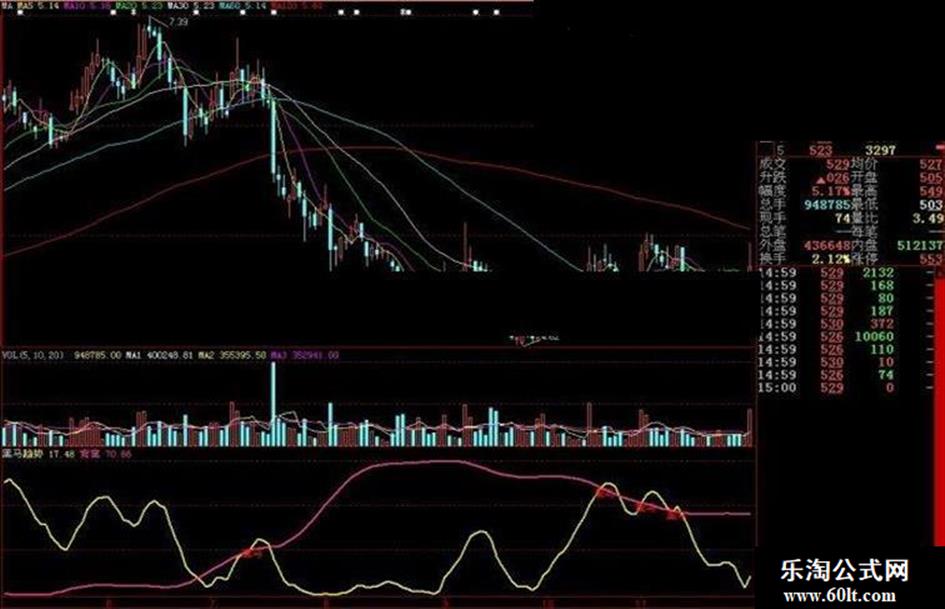 RSV:=(CLOSE-LLV(LOW,20))/(HHV(HIGH,20)-LLV(LOW,20))*100; 趋势:3*SMA(RSV,8,1)-2*SMA(SMA(RSV,8,1),7,1),COLORyellow,linethick2; Var1:=3*SMA((CLOSE-LLV(LOW,89))/(HHV(HIGH, 89)-LLV(LOW,89))*100, 20, 1)-2*SMA(SMA((CLOSE-LLV(LOW,89))/(HHV(HIGH,89)-LLV(LOW,89))*100, 20, 1), 15, 1); Var2:=3*SMA((OPEN-LLV(LOW,89))/(HHV(HIGH, 89)-LLV(LOW,89))*100, 20, 1)-2*SMA(SMA((OPEN-LLV(LOW,89))/(HHV(HIGH,89)-LLV(LOW,89))*100, 20, 1), 15, 1); Var3:=Var2-100; Var4:=Var1-100; 背离: FORCAST(-1*var3,21),COLOR9933FF,linethick2; 黑马: DRAWTEXT(cross(趋势,背离),背离,'黑马'),colorred;