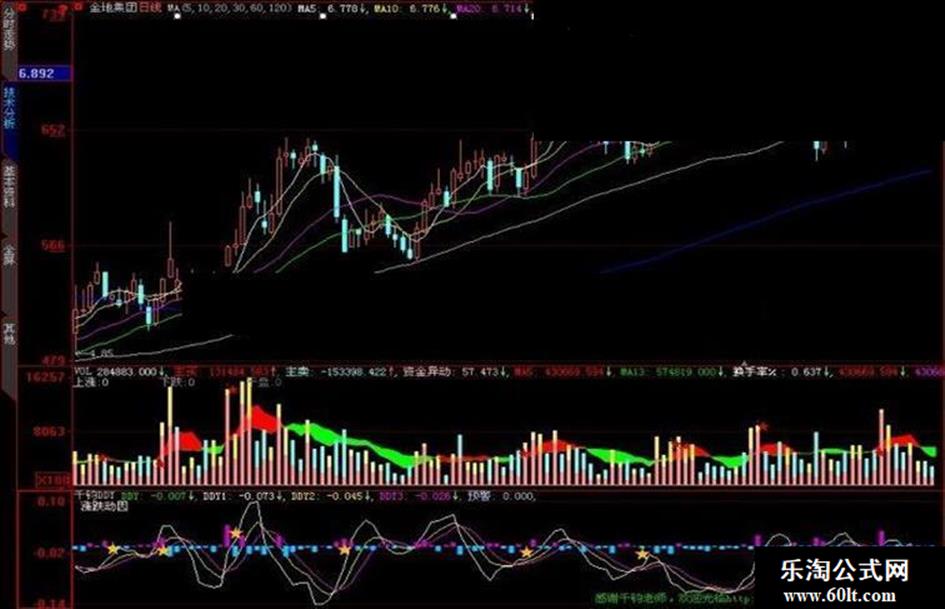 N:=22;jj:=(HIGH+LOW+CLOSE)/3;qj0:=vol/IF(HIGH=LOW,4,HIGH-LOW);