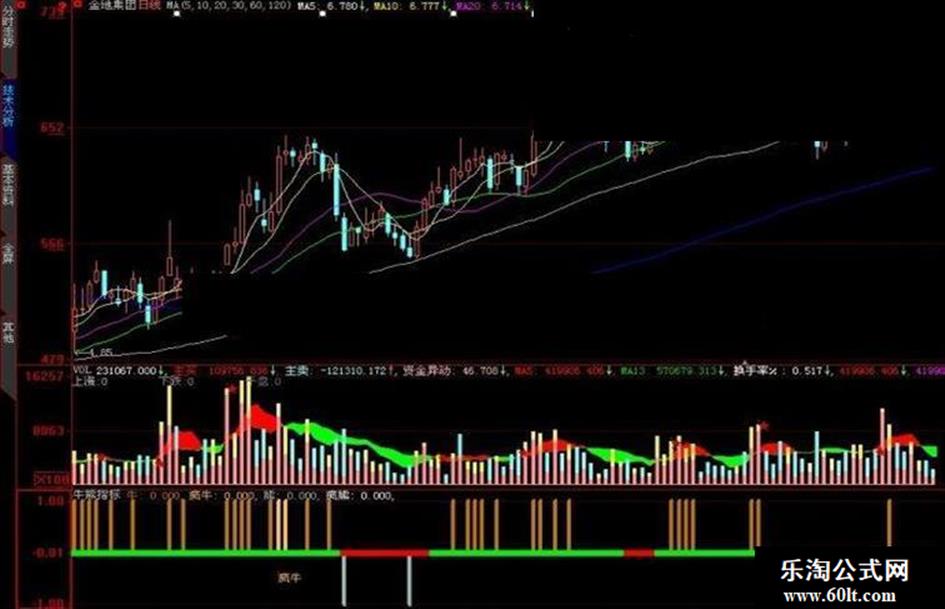 DRAWTEXT(CROSS(疯牛,0.5) AND COUNT(疯牛>0.5,10)=1,-0.4,'疯牛'),COLOR44bbff;