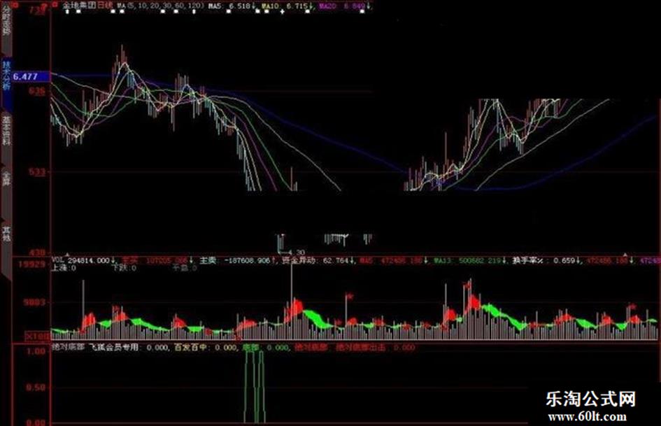 绝对底部:STICKLINE( FILTER(绝对=1,5),0 ,1.5,5 , 0.8),colorred;