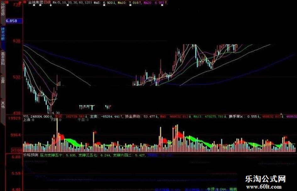 支撑三五七:高点-(高点-低点)*0.35765{,dotline},Linethick0,colorgreen;