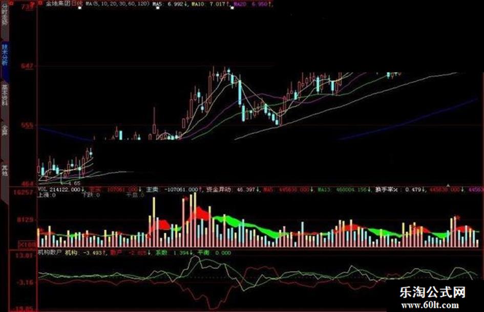 系数:EMA((((((((COUNT(VAR8,12) / 12) + (COUNT(VAR7,12) / 12)) + (COUNT(VAR9,12) / 12)) / 3) * MA(机构,5)) * 2) *1.1),2),COLORGREEN;