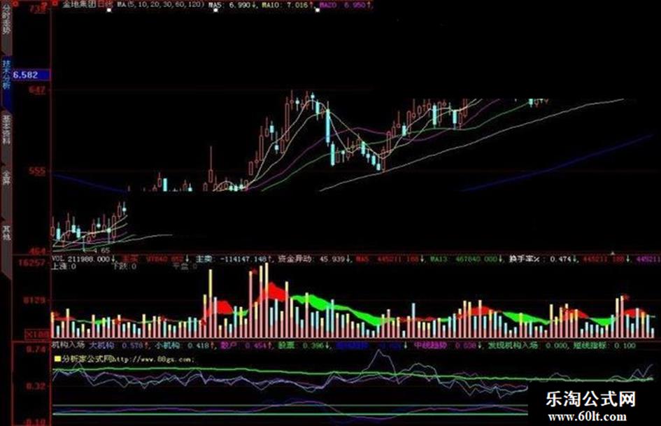 发现机构入场:IF((((((((VAR1A <= VAR4) AND (VAR1A <= VAR5)) AND (VAR1A <= VAR6)) AND (VAR1B >= VAR4)) AND (VAR1B >= VARF)) AND (VAR16 > 0)) AND (VAR19 > 0)),0.5,0),LINETHICK2,color66FF00;