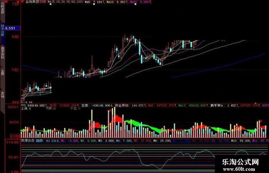 趋势:EMA(((CLOSE-V1)/(V2-V1))*(100),4),CoLorFFFF00;