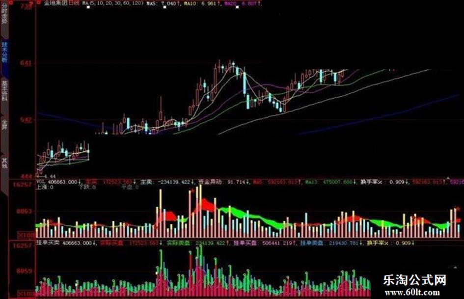 实际卖盘:IF(CLOSE>OPEN,AA*((HIGH-CLOSE)+(OPEN-LOW)),IF(CLOSE<OPEN,AA*(HIGH-LOW),VOL/2)),Color00F800, LINETHICK1;